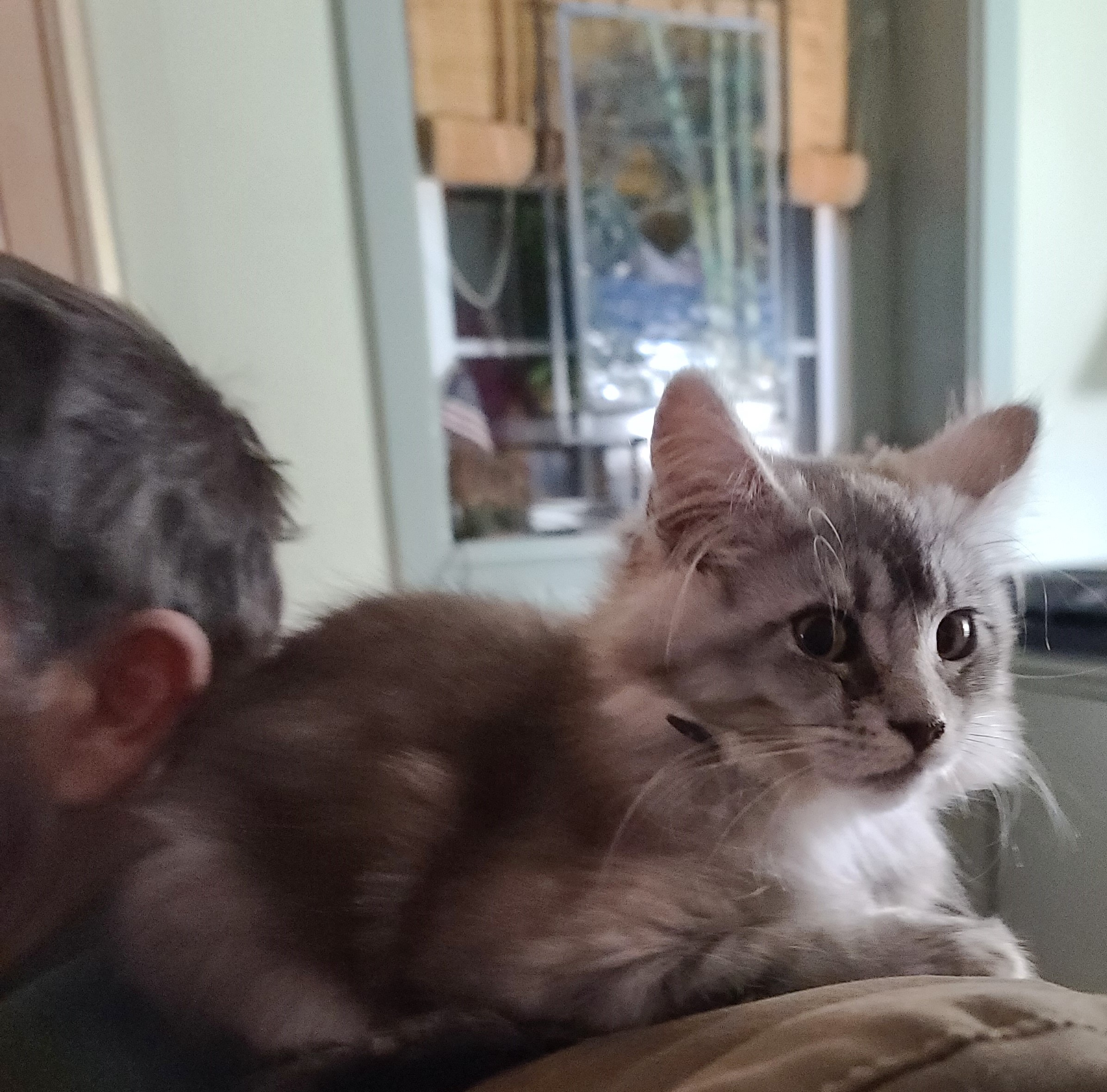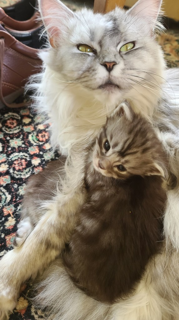 Luna’s mom often sends us photos. She reports that Luna has to be with her at all times……even when cooking!
